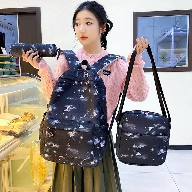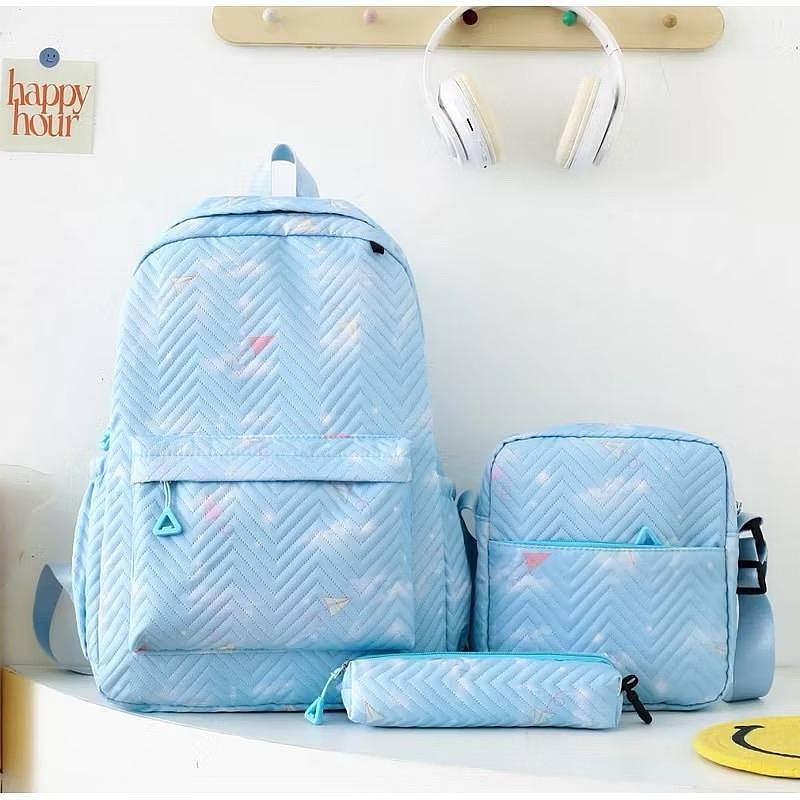 Kit 3 Mochila de Nylon Com Bolsa Transversal e Estojo Juvenil Para Escola Viajar Multiuso