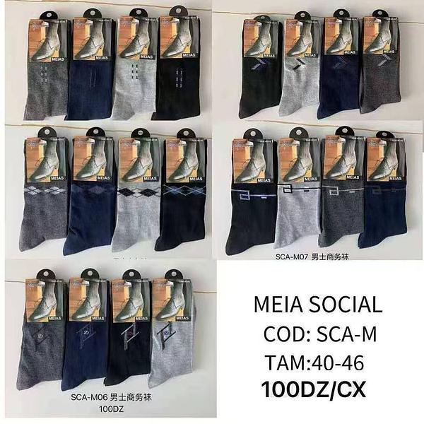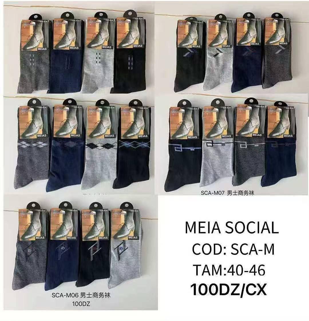 Kit Com 12 Pares Meias Masculina Social Cano Longo 40–46