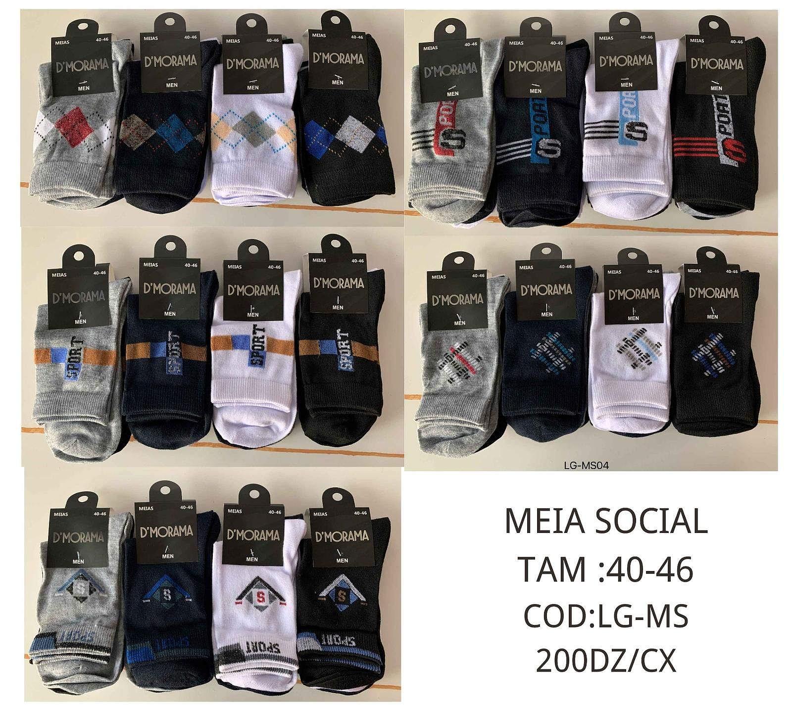 Kit Com 12 Pares Meias Masculina Social Cano Longo 40–46