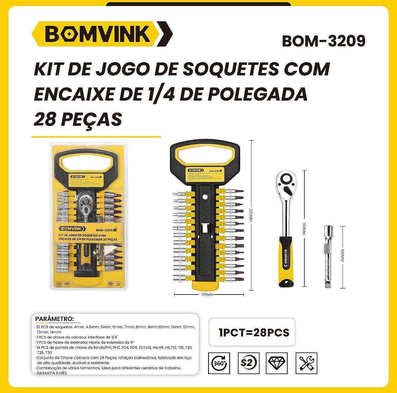 KIT DE JOGO DE SOQUETES COM ENCAIXE DE 1/4 DE POLEGADA28 PEÇAS