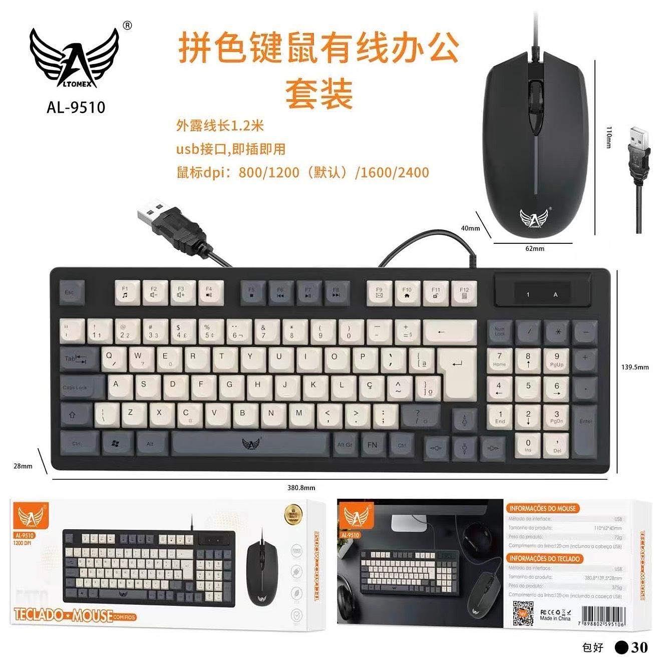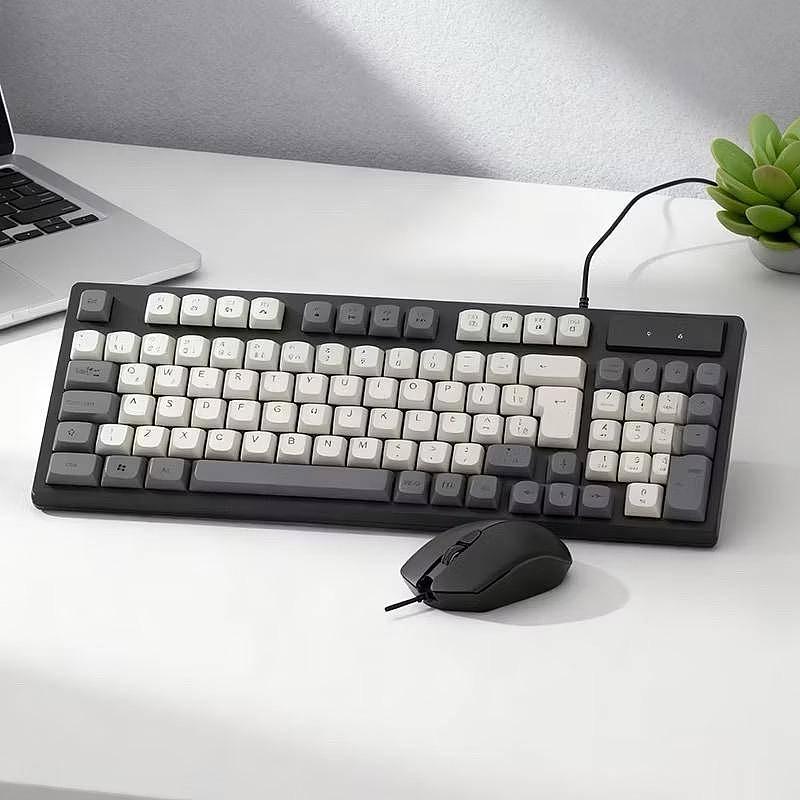 Kit de teclado e mouse com fio para escritório e jogos, teclado com sensação mecânica