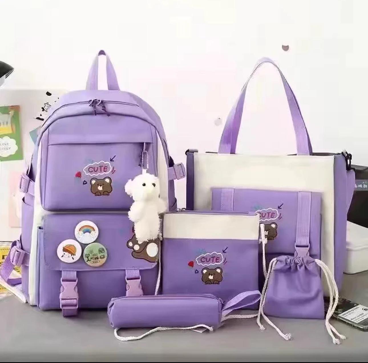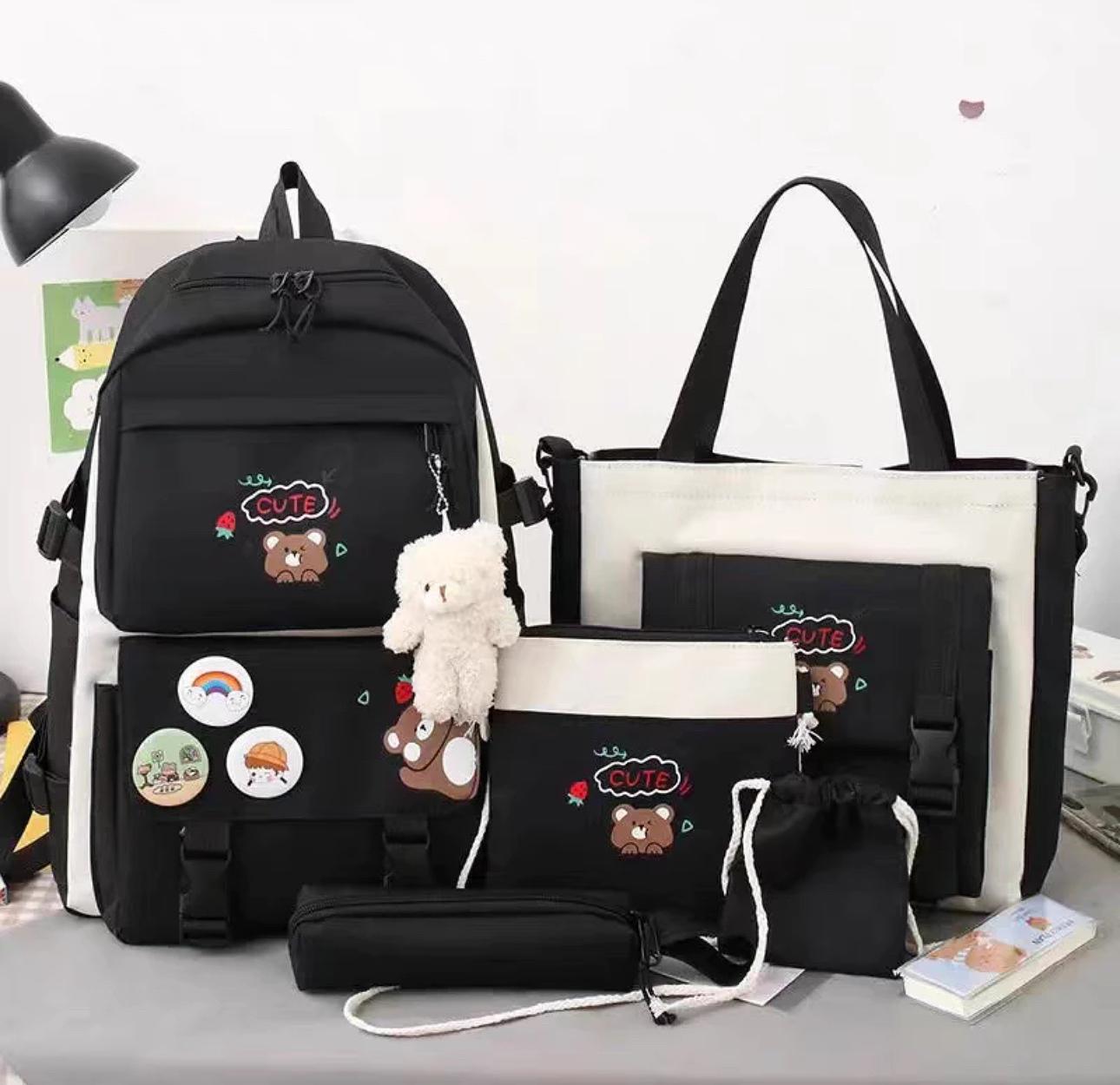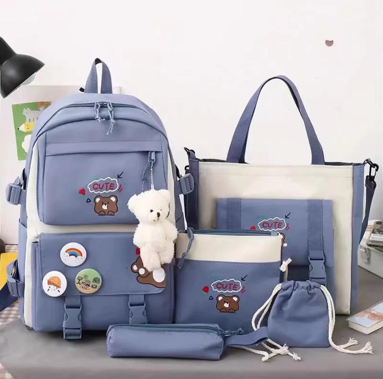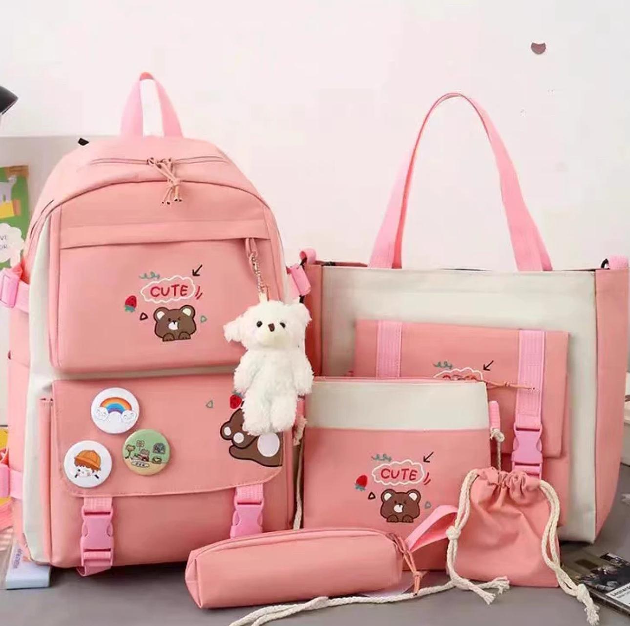 Kit Mochila 5 Peças Conjunto Bolsas Feminina Estojo Escolar Com Chaveiro e Bottom,tem 5cor