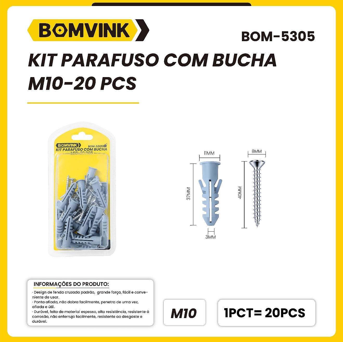 KIT PARAFUSO COM BUCHA M10-20 PCS