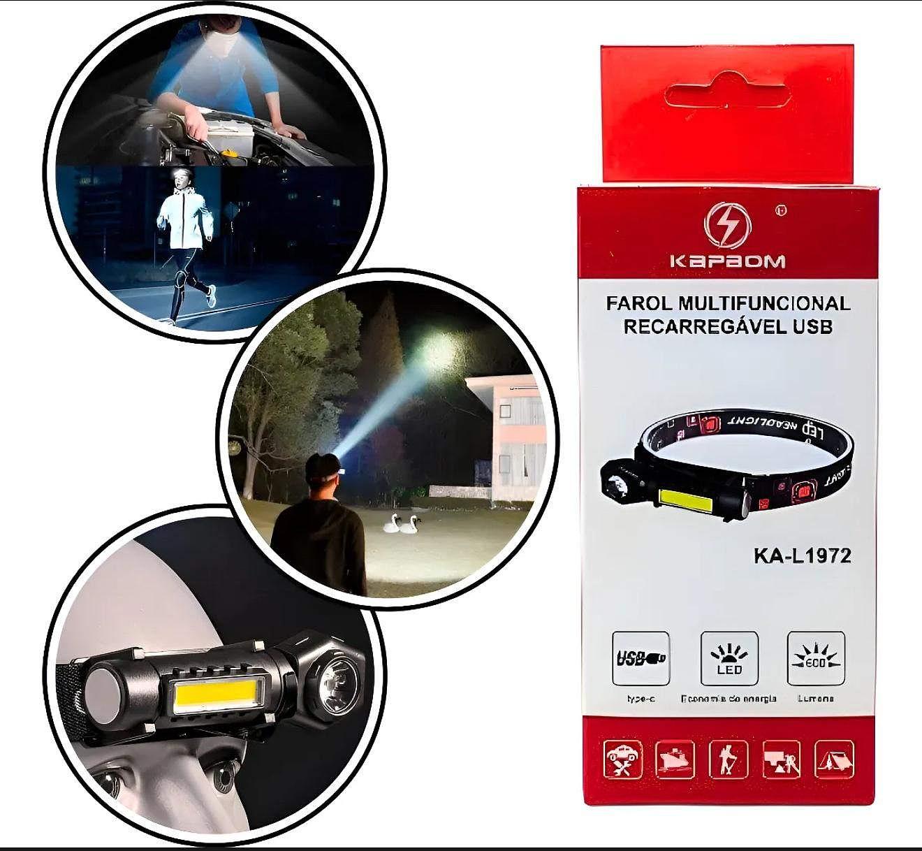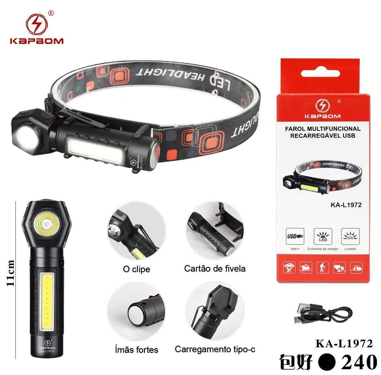 Lanterna De Cabeça 2 Em 1 Luz Led Xpe + Cob Kapbom Lanterna Branco Luz Preto