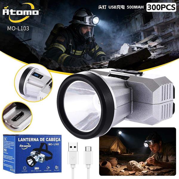 Lanterna De Cabeça LED Alcance USB Recarregável
