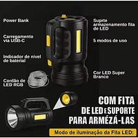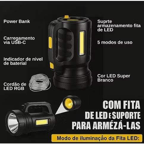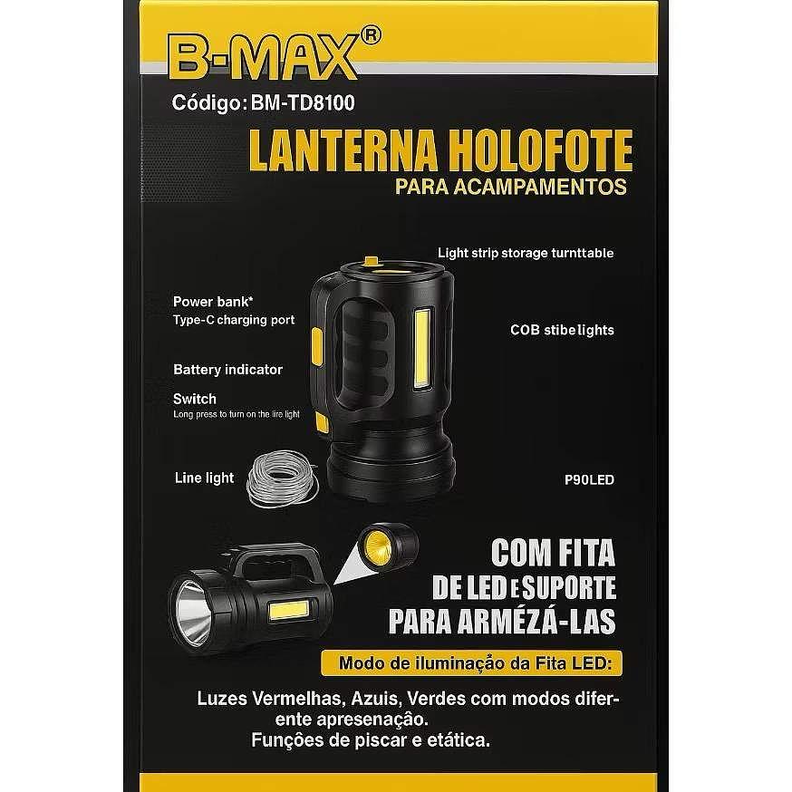 Lanterna Holofote com Fita LED farol portátil recarregável para pesca e acampamento BMAX BM-TD8100