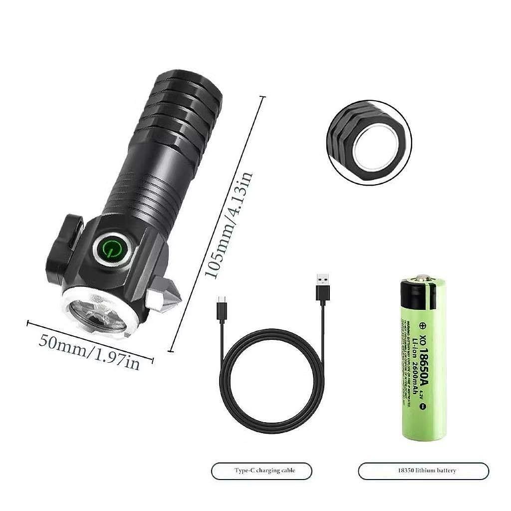 Lanterna Tatica De Led Com Quebra Vidro E Corte Cinto Recarregavel