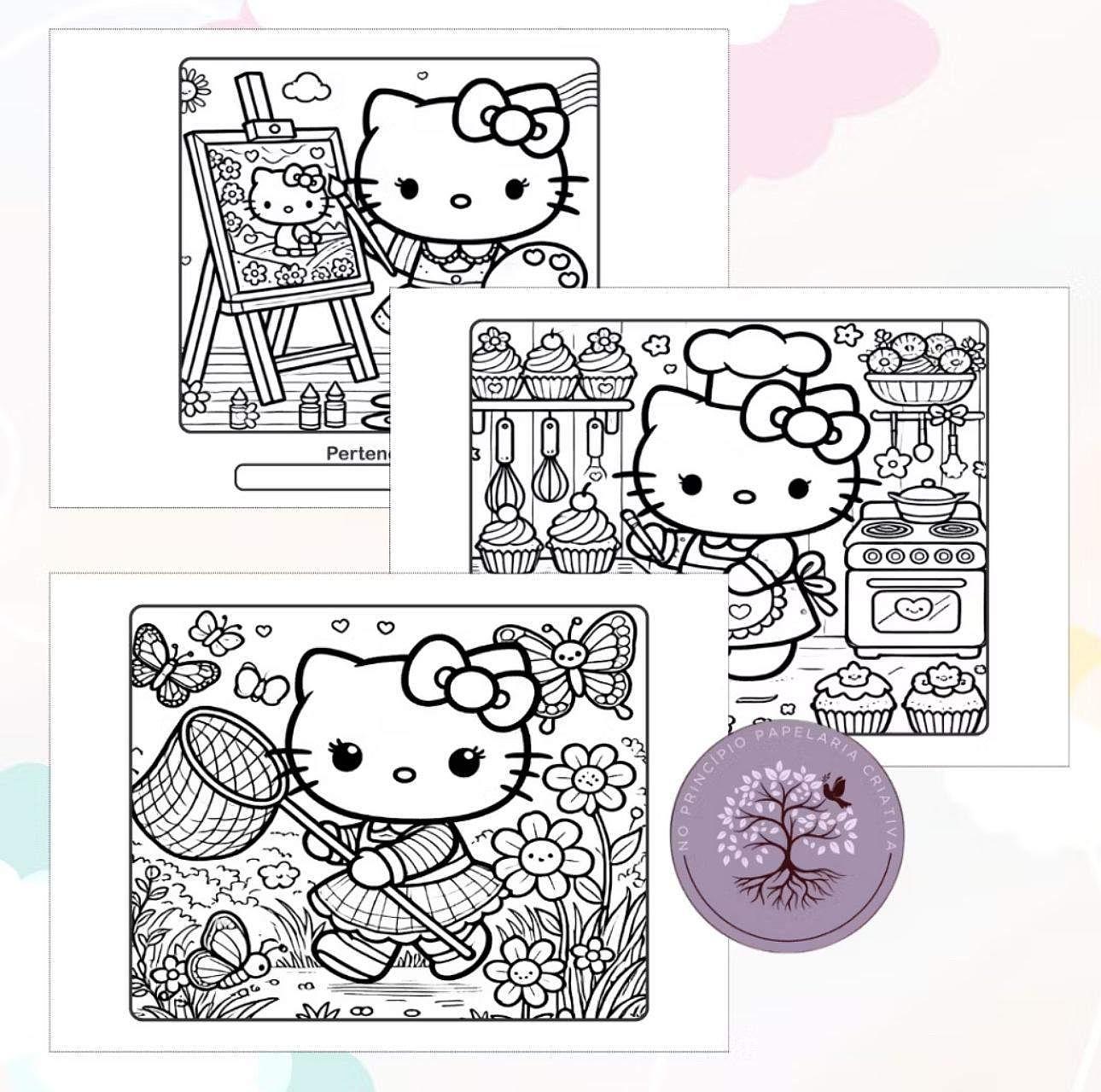 Livro de colorir Hello Kitty-50 imagens, capa mole holográfica, formato A5 120g