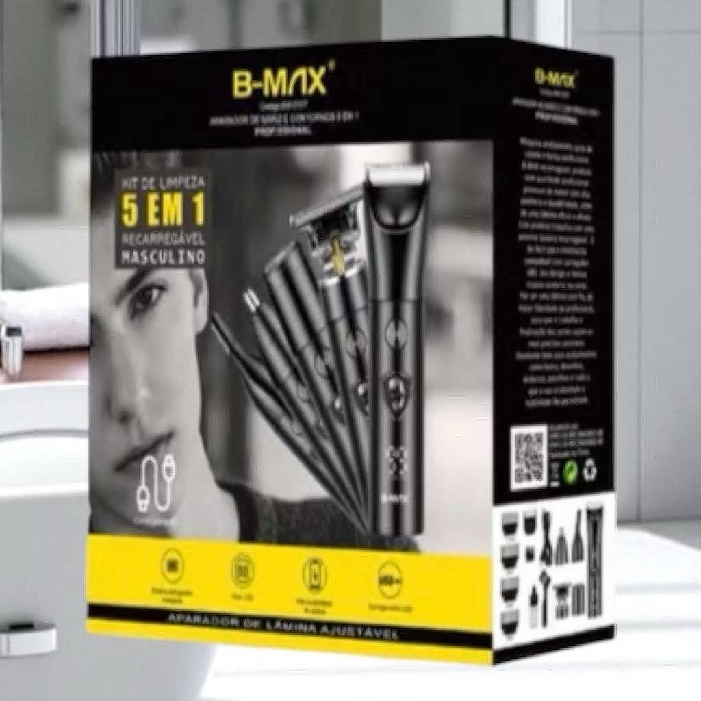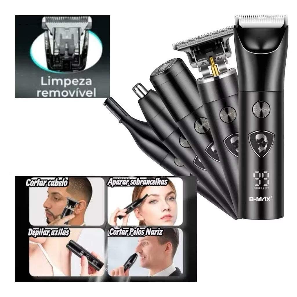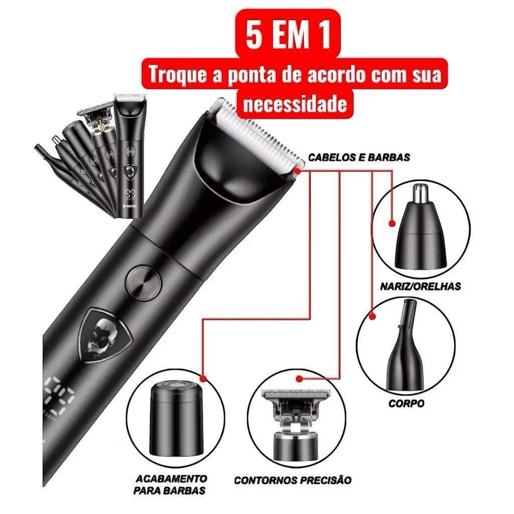 Maquina Barbeador Aparador Pelos 5 EM 1 Barba Cabelo Nariz Orelha Sobrancelha Eletrico Recarregavel—BAMX