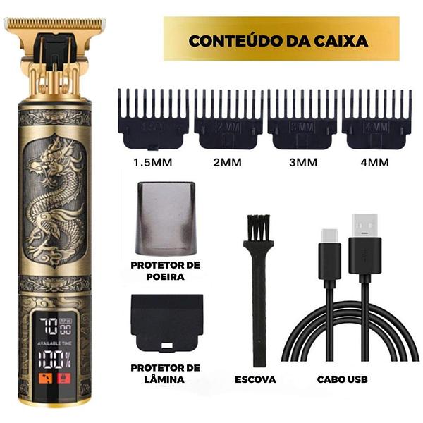 Máquina De Cortar Cabelo Barba Acabamento Bivolt Display Cor Dourado 110V/220V