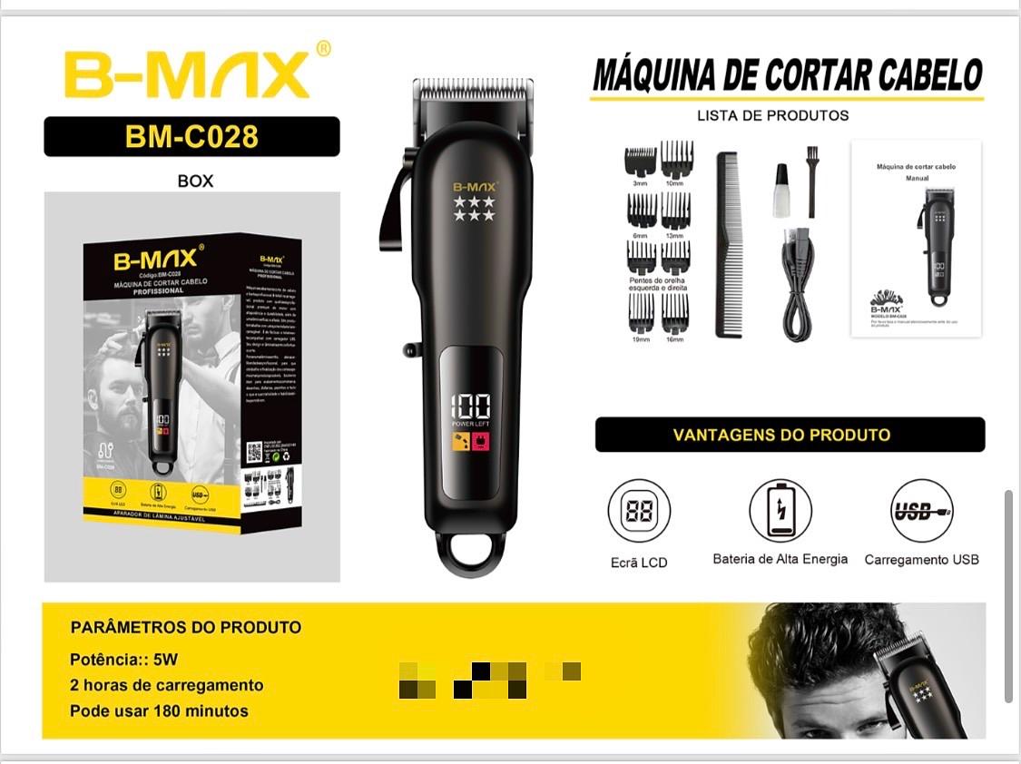 Máquina De Cortar Cabelo Cortador Barbeador Aparador Profissional Acabamento Barba 8 Peças Elétrico