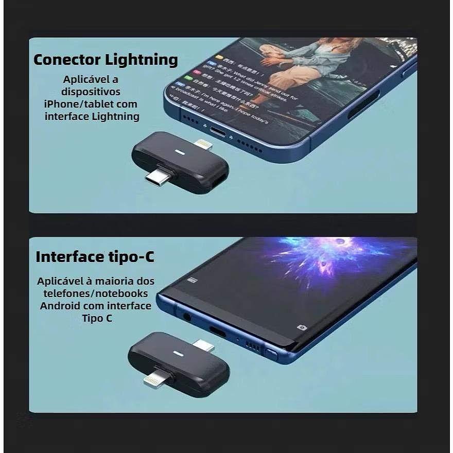 Microfone de Lapela Sem Fio 2 in 1 Type C e Lightning REDUCÃO DE RUÍDO DE IA Microfone duplo MCF-38A