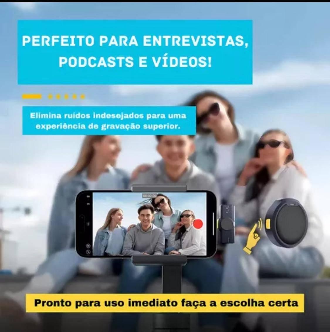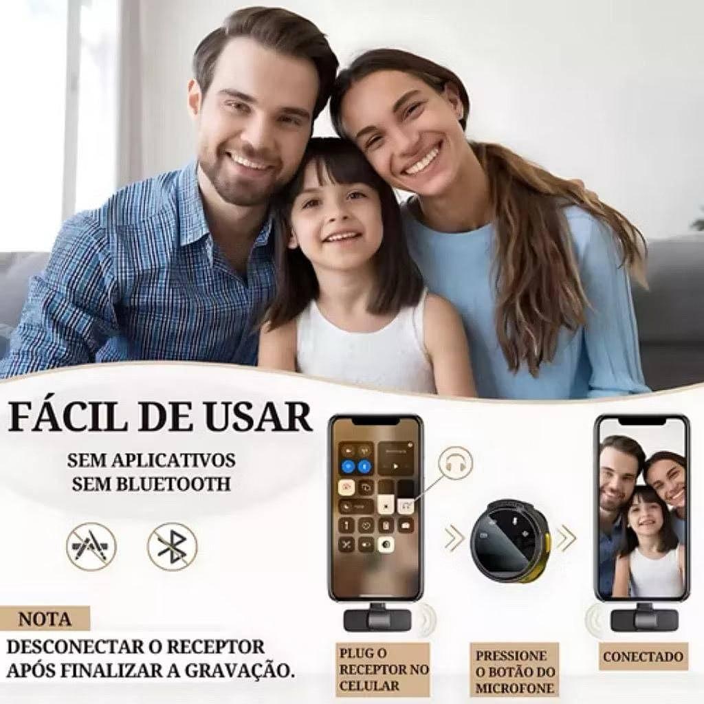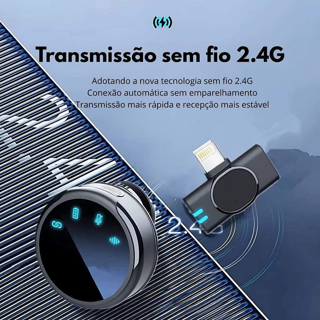 Microfone Sem Fio Profissional Com Estojo Magnético Recarregável Botão Redondo type-c