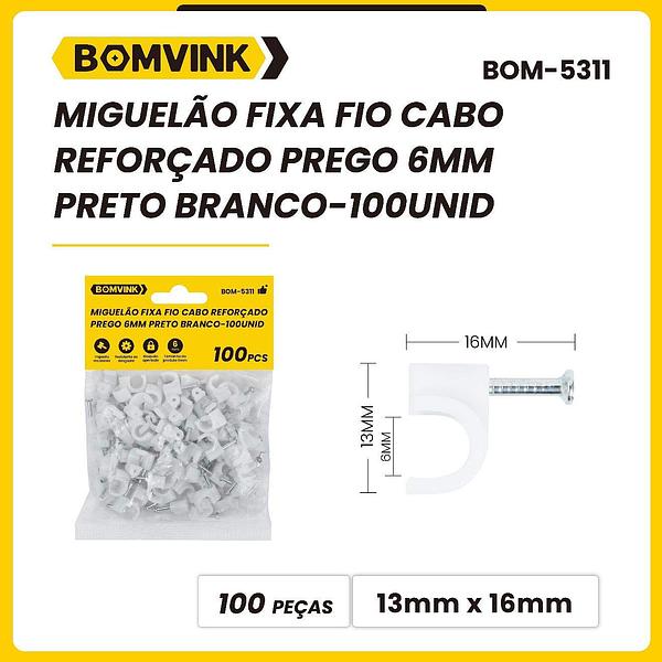 MIGUELÄO FIXA FIO CABO REFORÇADO PREGO 6MM PRETO BRANCO-100UNID