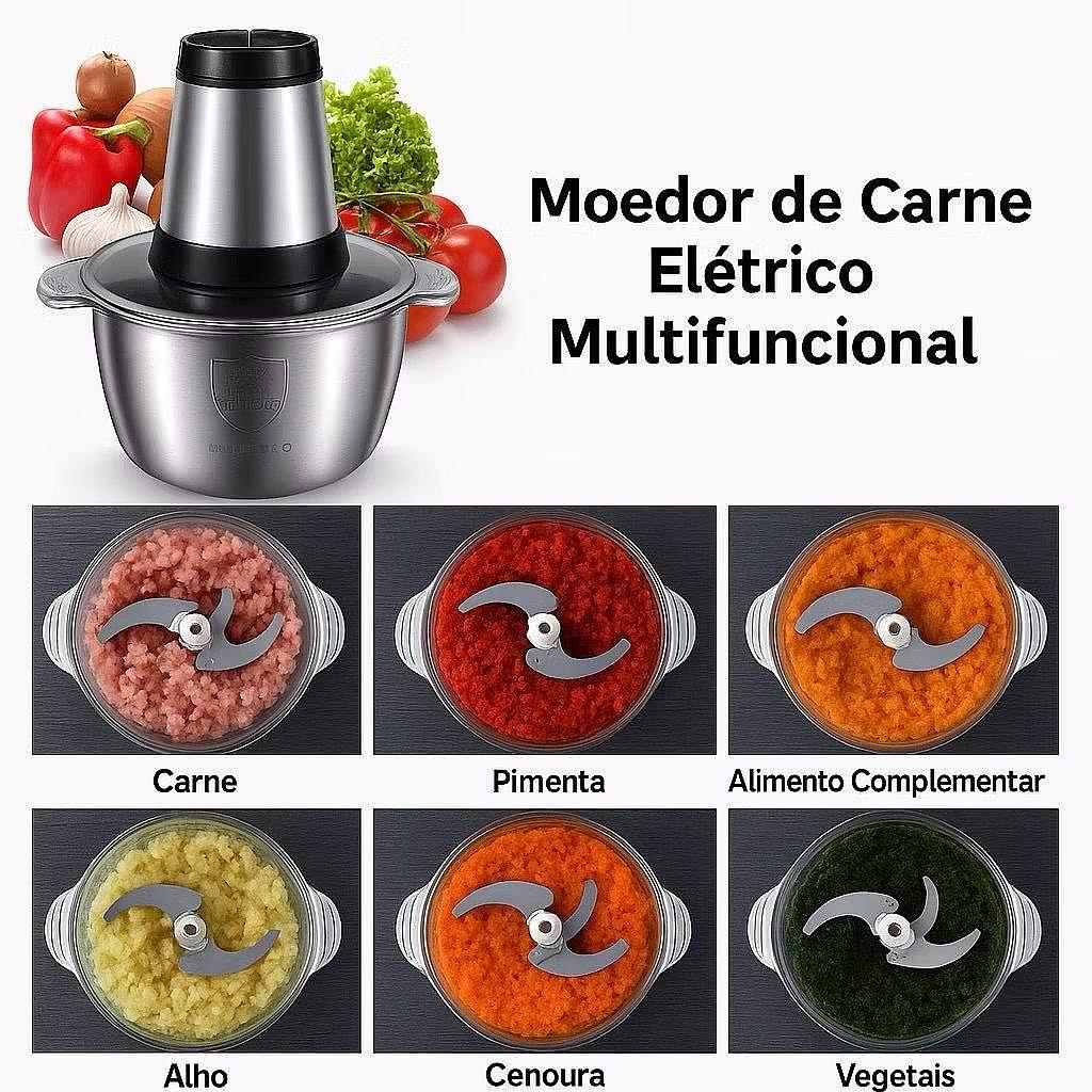 Moedor Elétrico Inox 3L ,Potencia:400W+Triturador Processador Carne Legumes 110v Cozinha