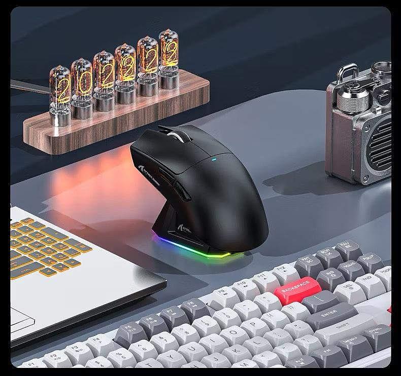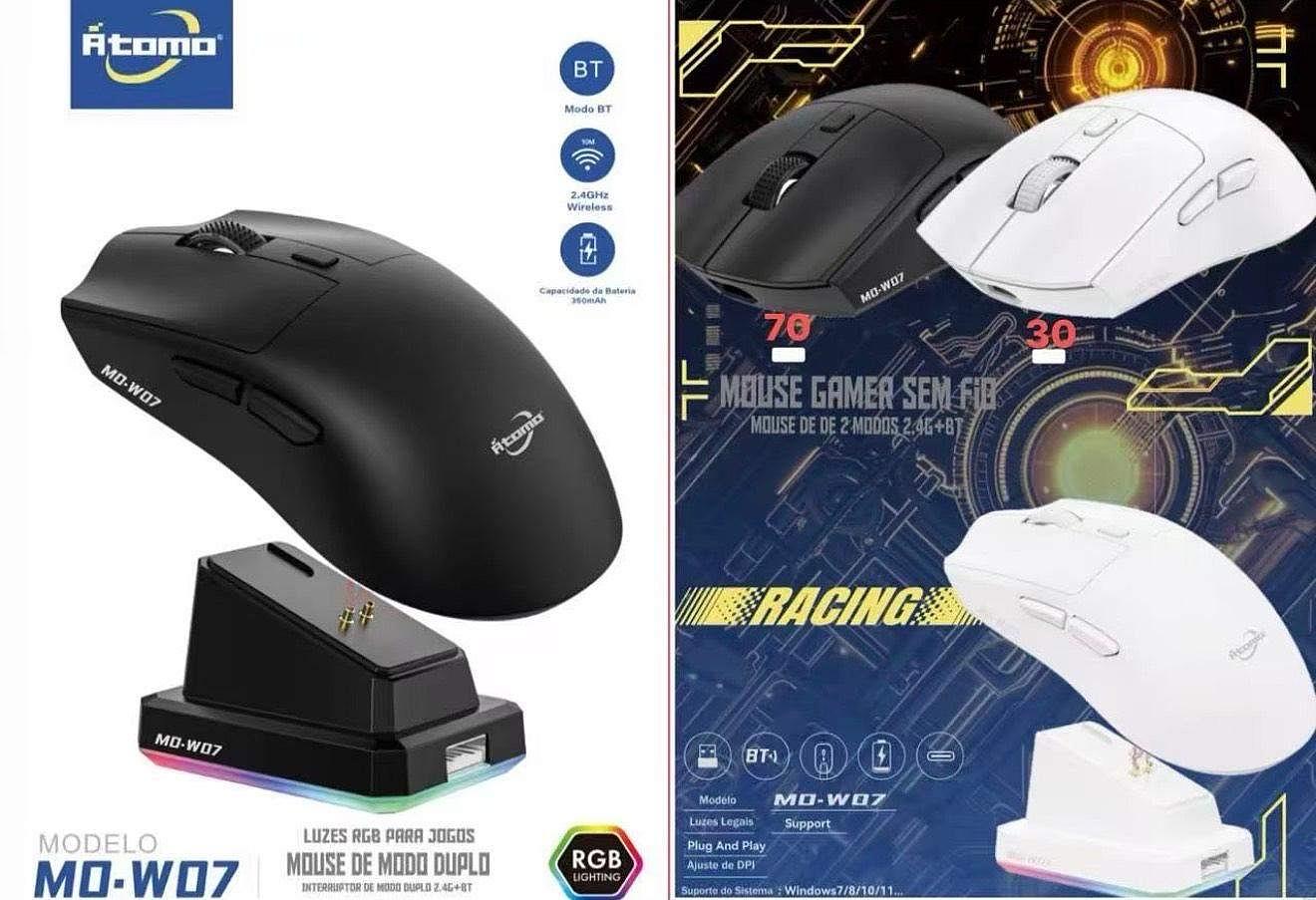 Mouse Gamer Sem Fio Original Attack Shark X11 com Adesivo, Bluetooth, USB, Preto e Branco, 3 em 1