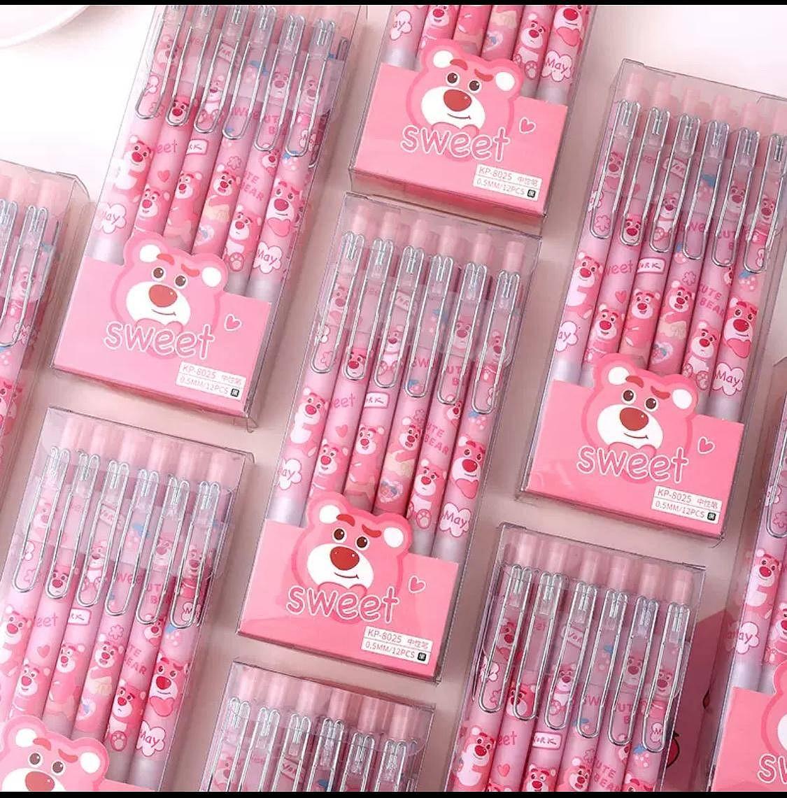 NOVO Caneta Morango Pen Rollerball Urso, Alta Aparência, Coração da Menina, Estudantes Rosa, 0,5 azul Escova Exame