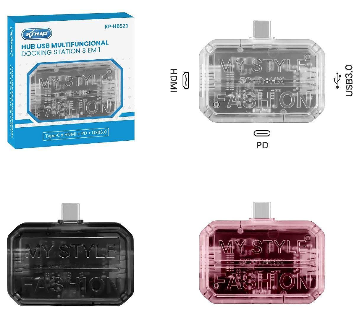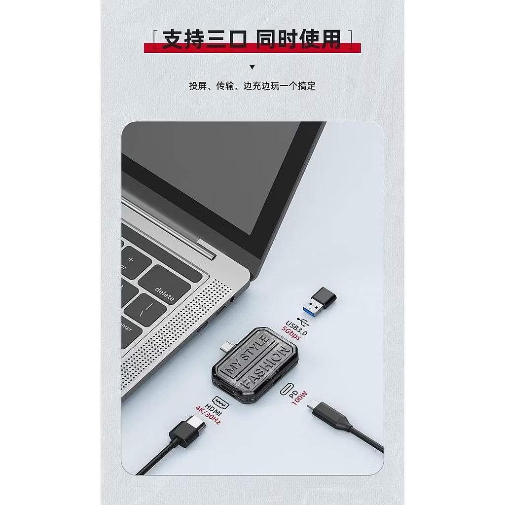 Novo produto transparente 3 em 1 multifuncional tipo C Docking Station porta USB-C para HDMI + USB3.0 + PD100W conversor