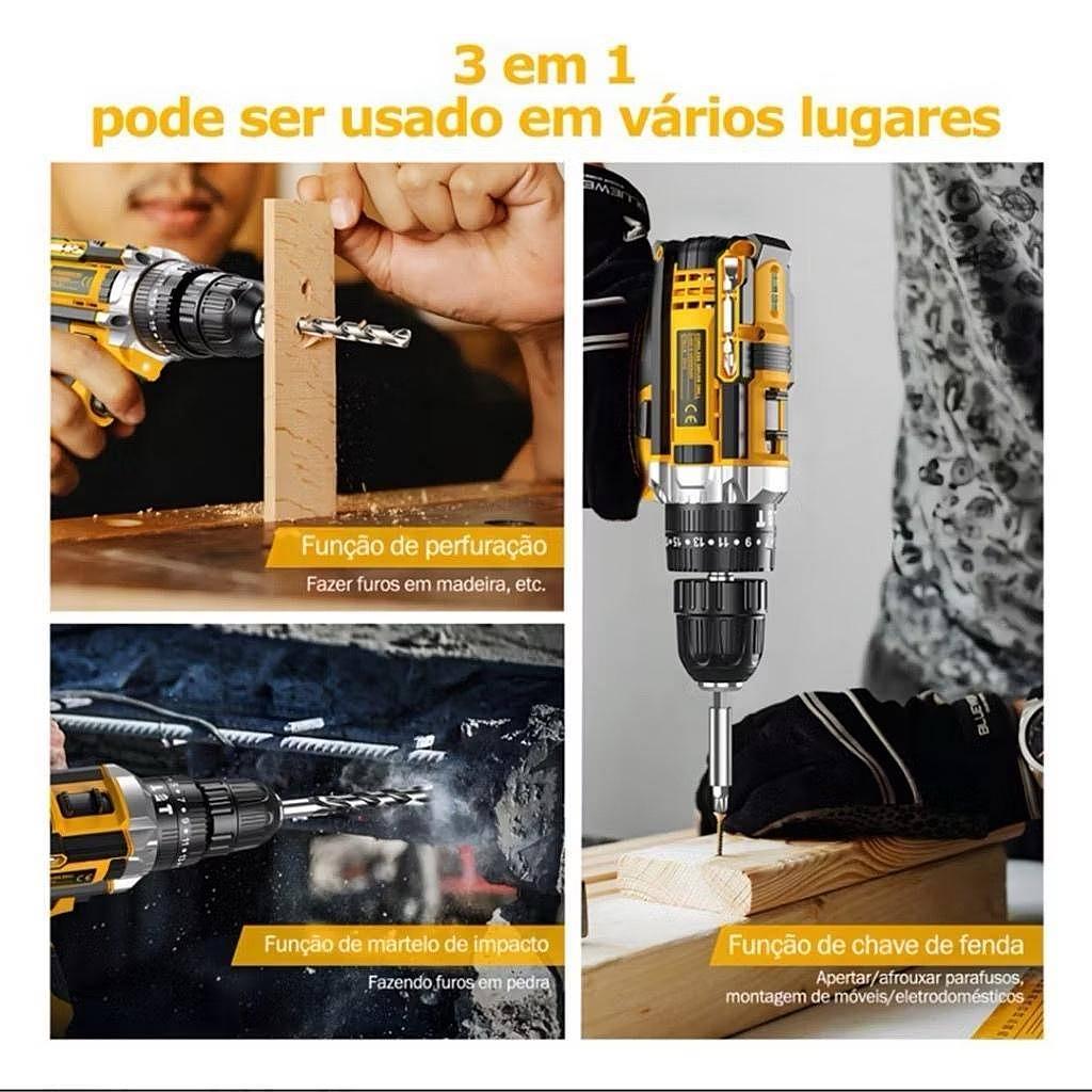 Parafusadeira Furadeira 48V Com Maleta e Acessórios Completo |