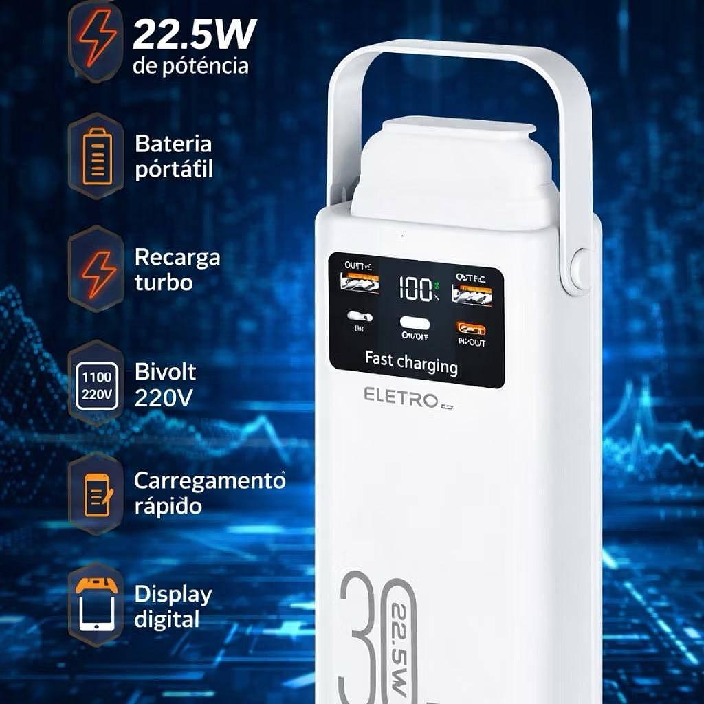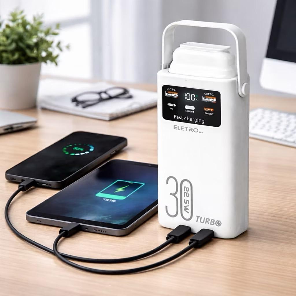 Power Bank 30000mAh 22.5W PD Carregamento Rápido com Lanterna e Múltiplas Saídas – Eletromex