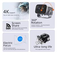 Projetor A10 Android TV 4K Dual Band WIFI 6.0 Bluetooth 5.0 Cinema Portátil Escritório Sala—AGOLD