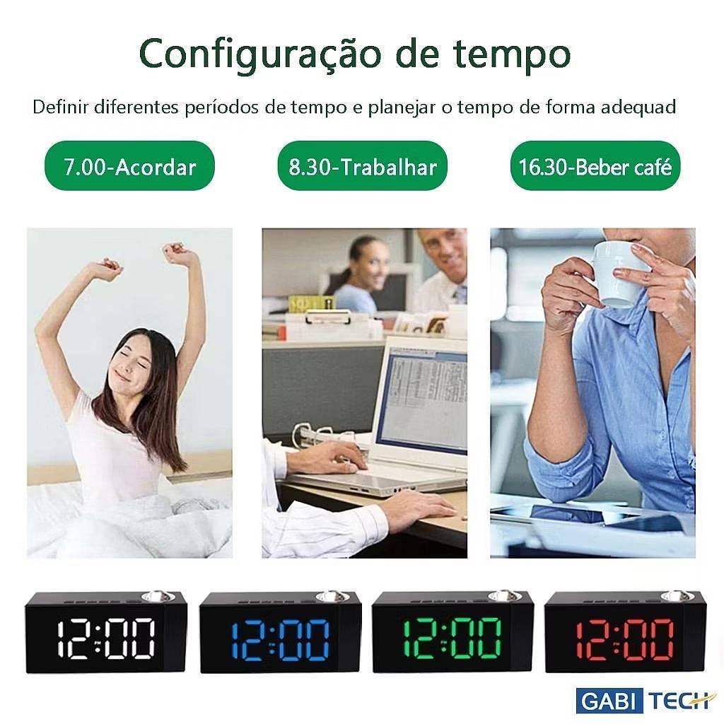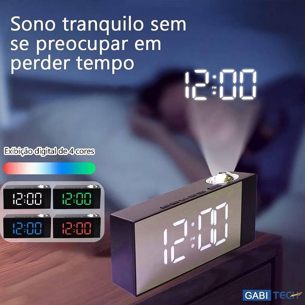 Relógio Digital De Mesa Led Com Projetor No Teto E Alarme Data Tempo