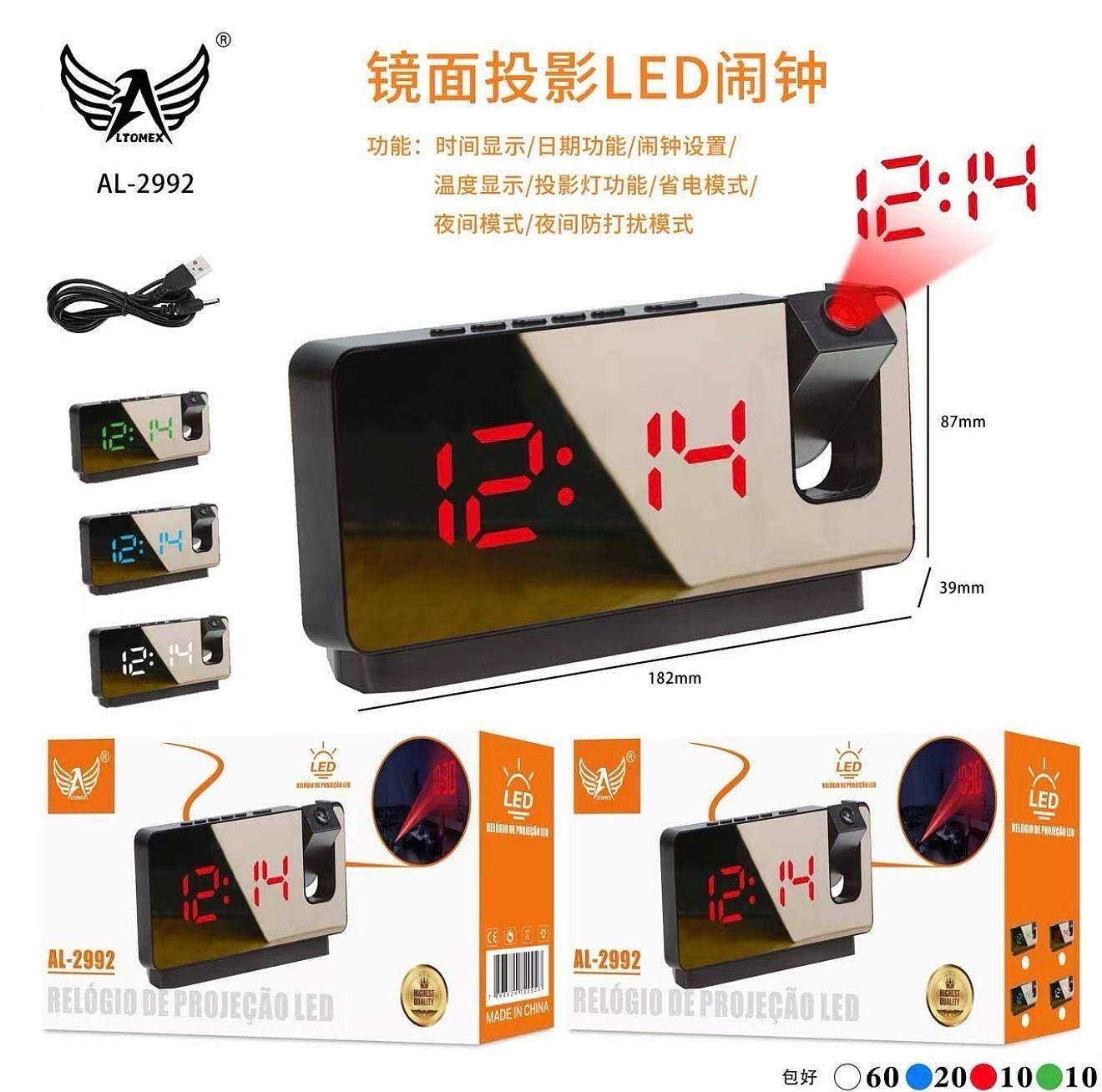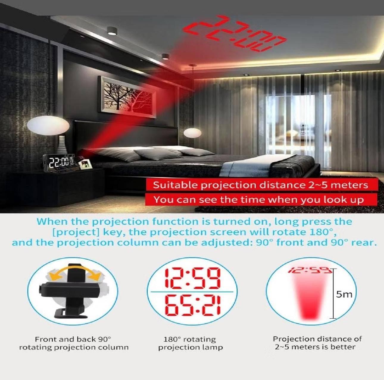 Relógio Digital De Mesa Led Com Projetor No Teto E Alarme Data Tempo