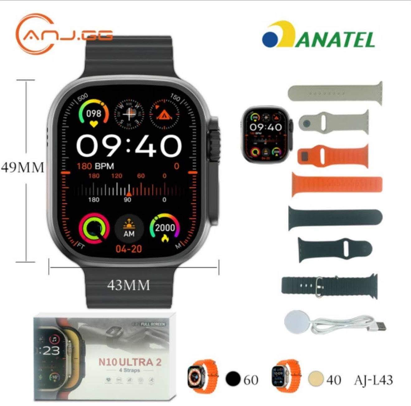 Relógio Smartwatch N10 Ultra 2 Responde Mensagem 4 Pulseiras