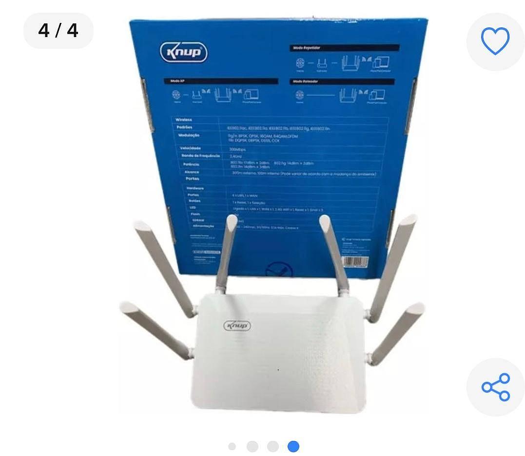 Roteador Wifi 2.4ghz 300mbps Com 6 Antenas Knup - Kp-rw403/m