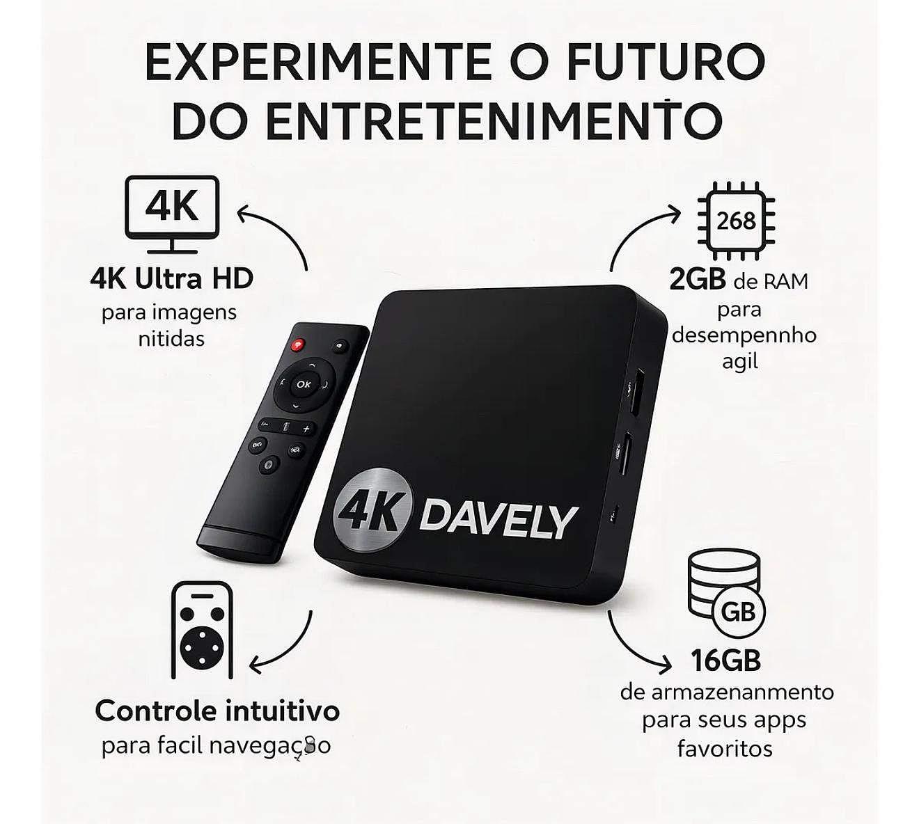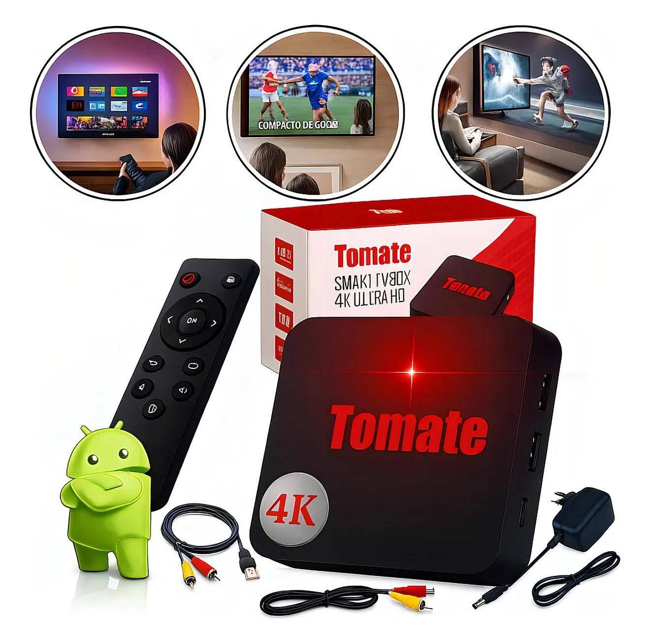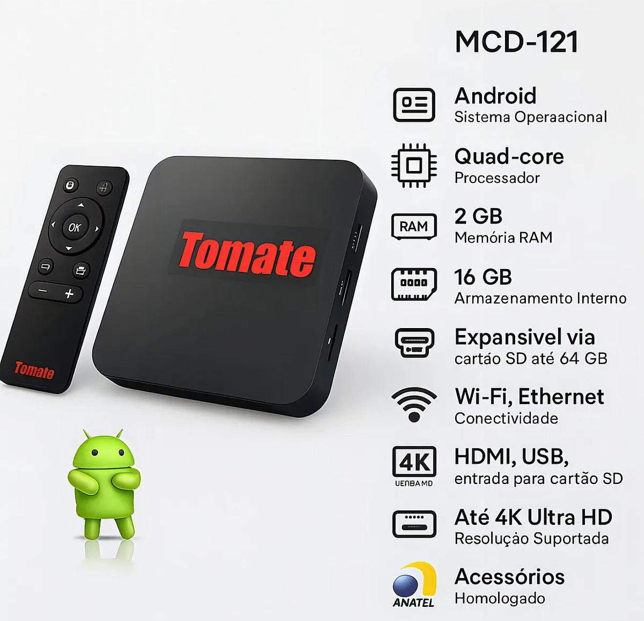 Smart TV Box Tomate Android 4K Preto 2GB RAM 16GB Armazenamento Wi-Fi(Original)