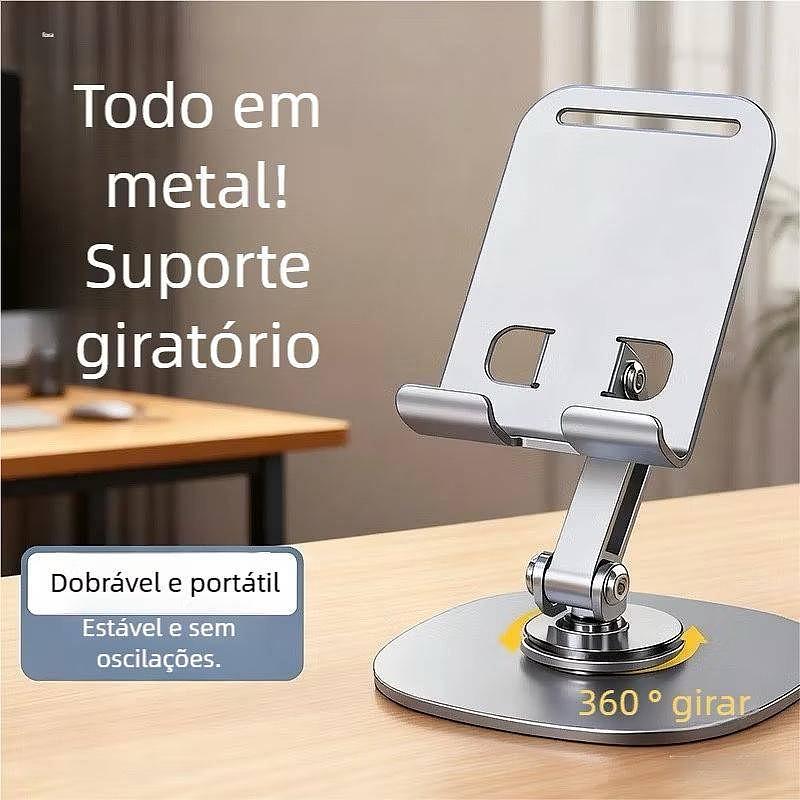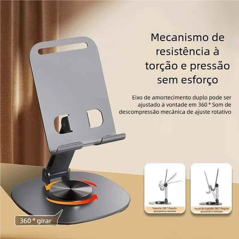 Suporte Ajustável 360º para Mesa - Alumínio Base Rotatória para Smartphone e Tablet