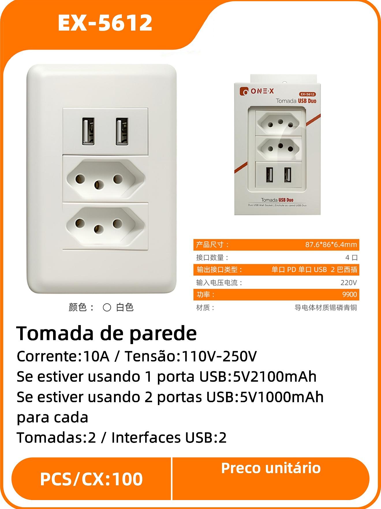 Tomada Usb De Parede Carregador Turbo Para Celular E Afins