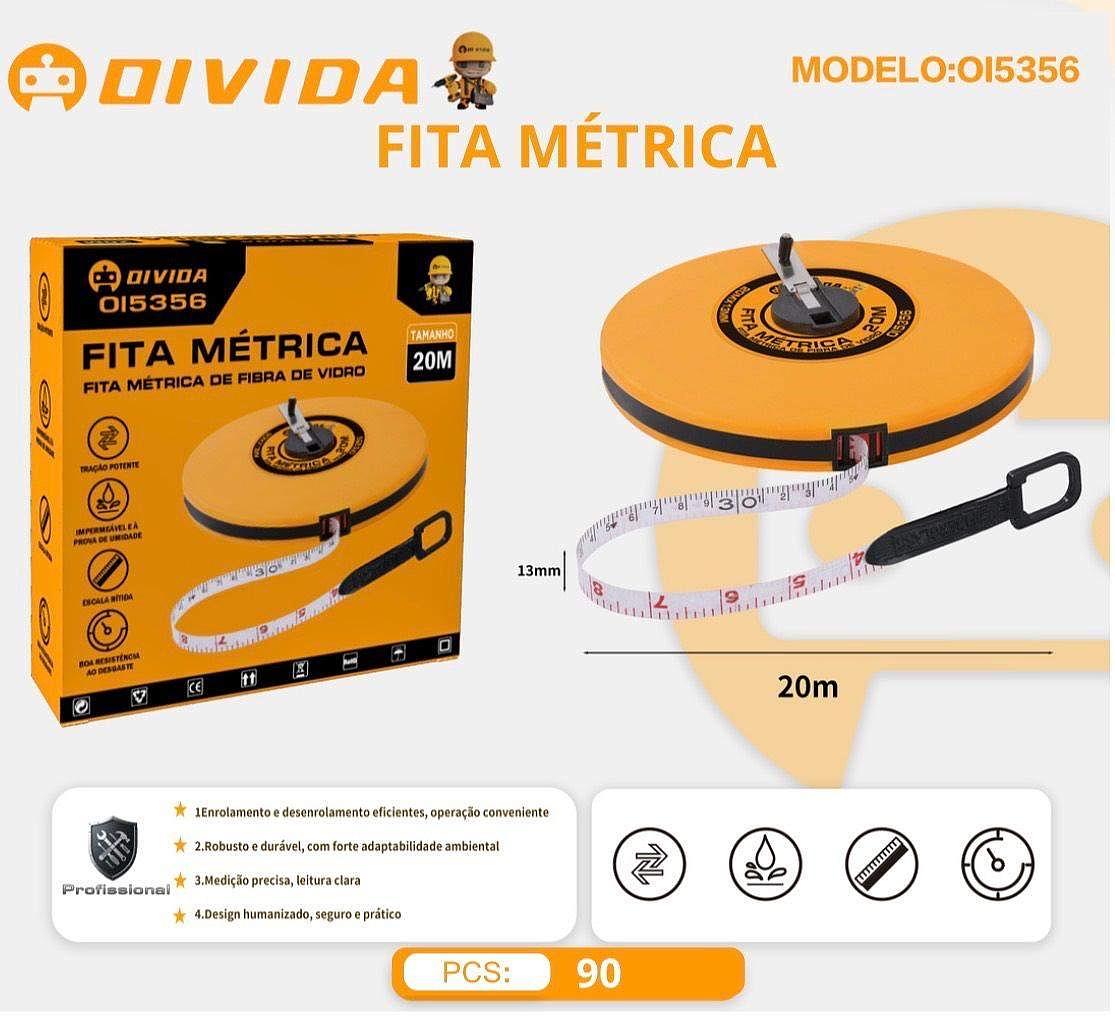 TRENA FITA MÉTRICA 20 METROS FIBRA DE VIDRO PROFISSIONAL PARA MEDIÇÃO