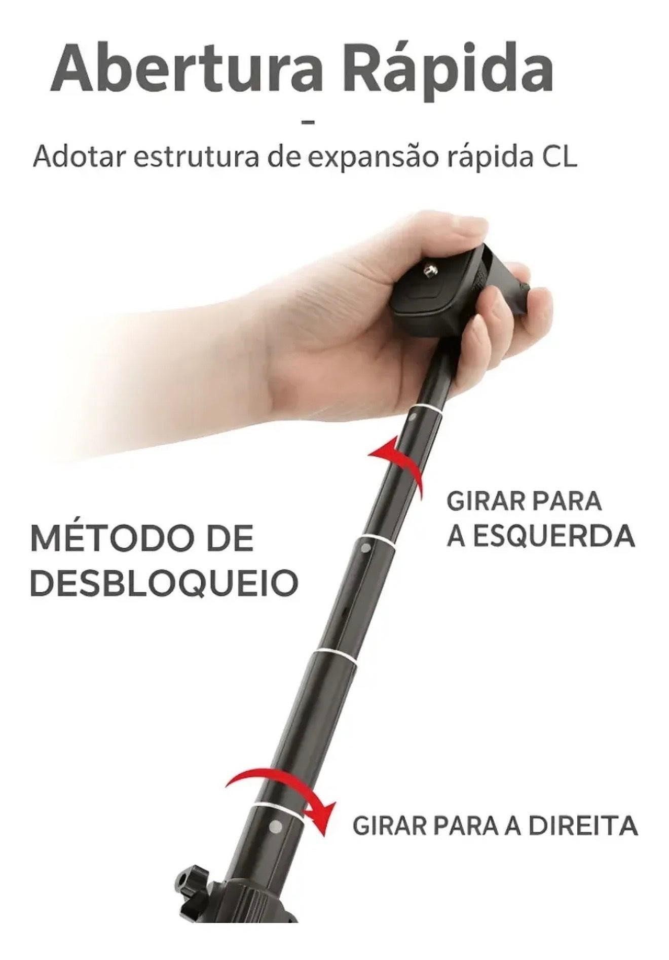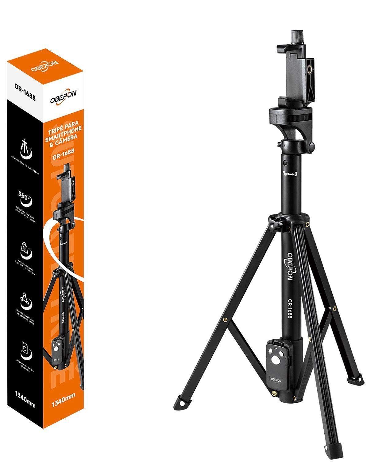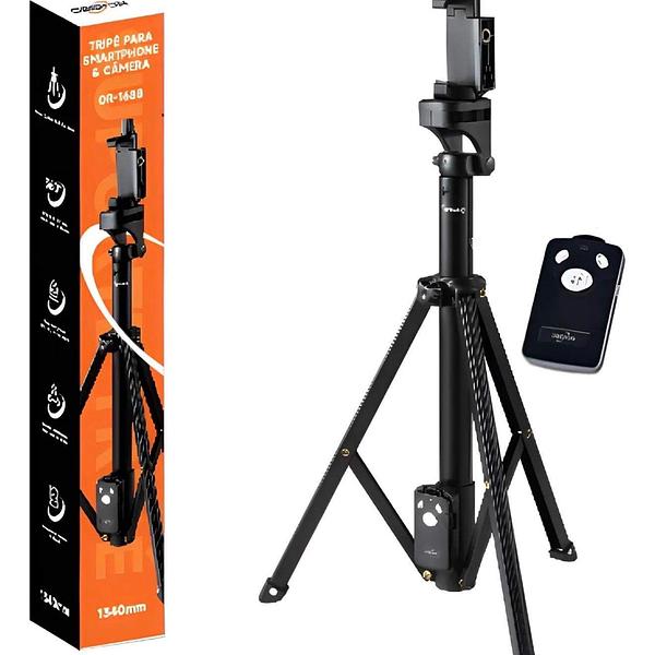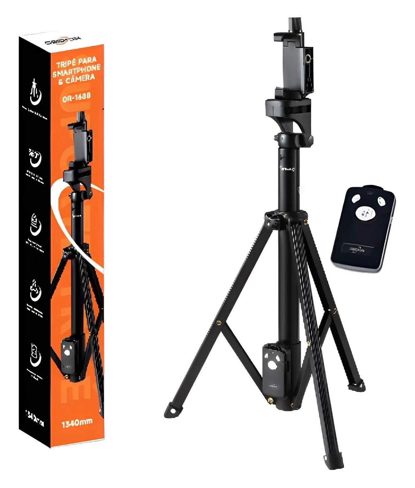 Tripé Profissional Camera Celular 1,34m Controle Bluetooth Preto