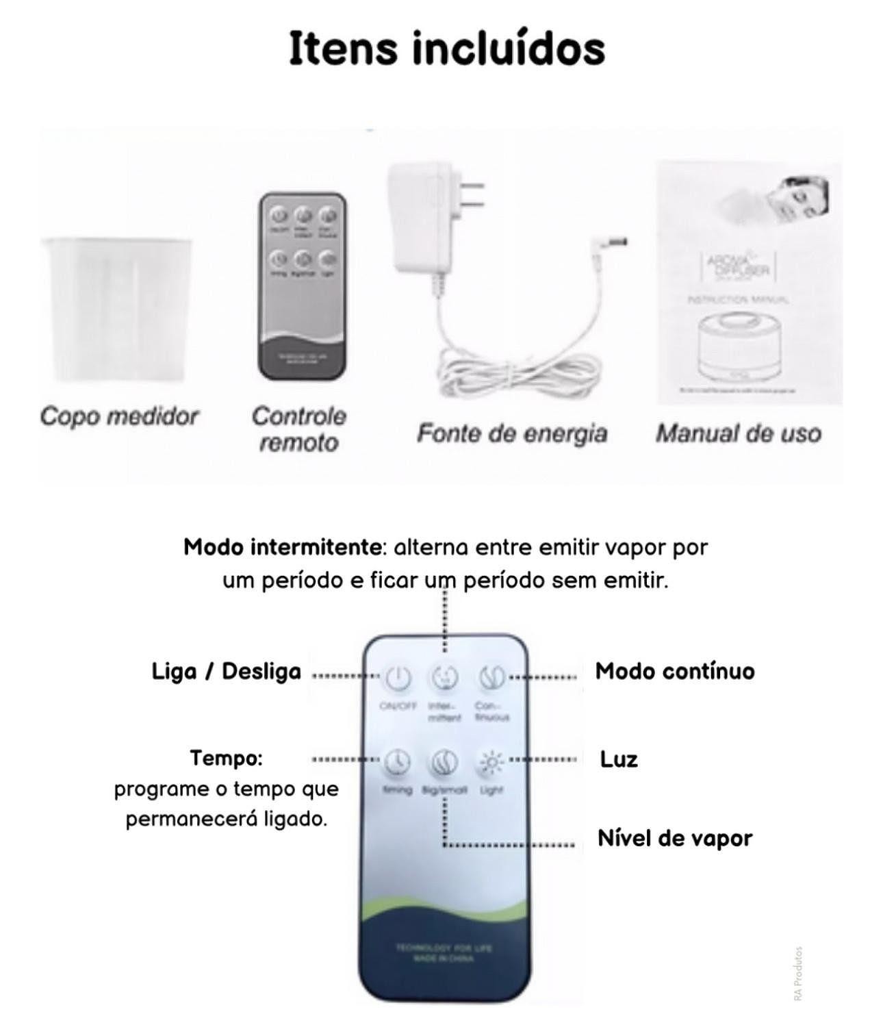 Umidificador Difusor Aromático 200ml Com Lâmpada Led com controle remoto—BMAX