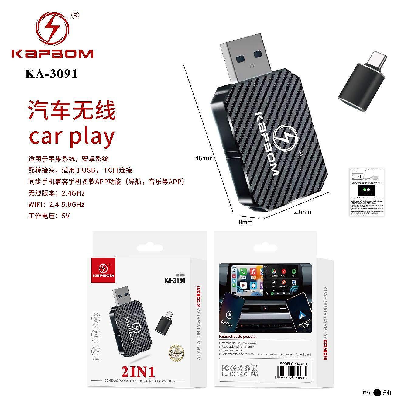 Wireless Carplay Android Auto Adapter 2 in 1 Mini Box CarPlay AI Box BT WiFi for Wired CarPlay